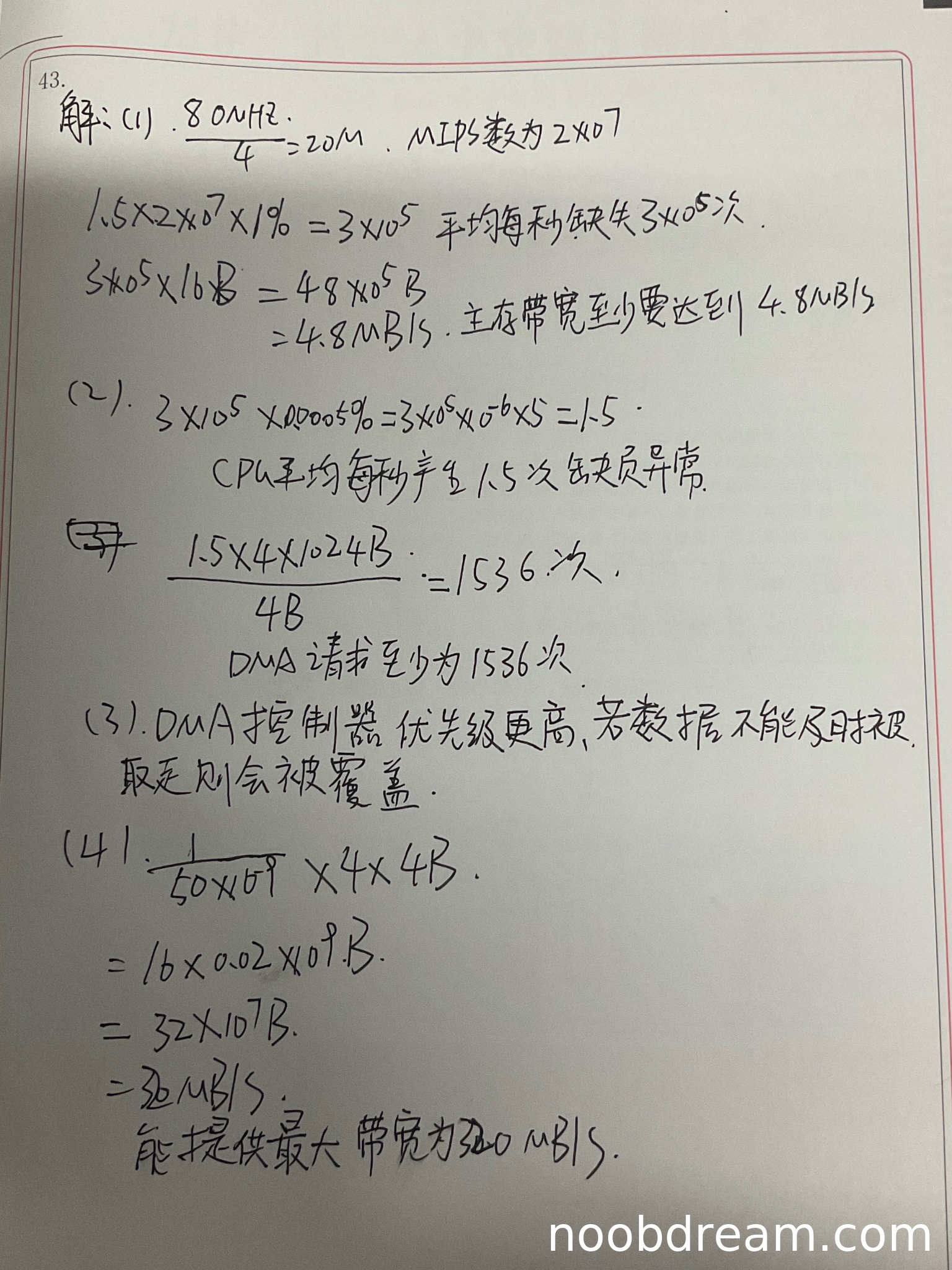 - 主存带宽计算正确(4.8MB/s),得2分。