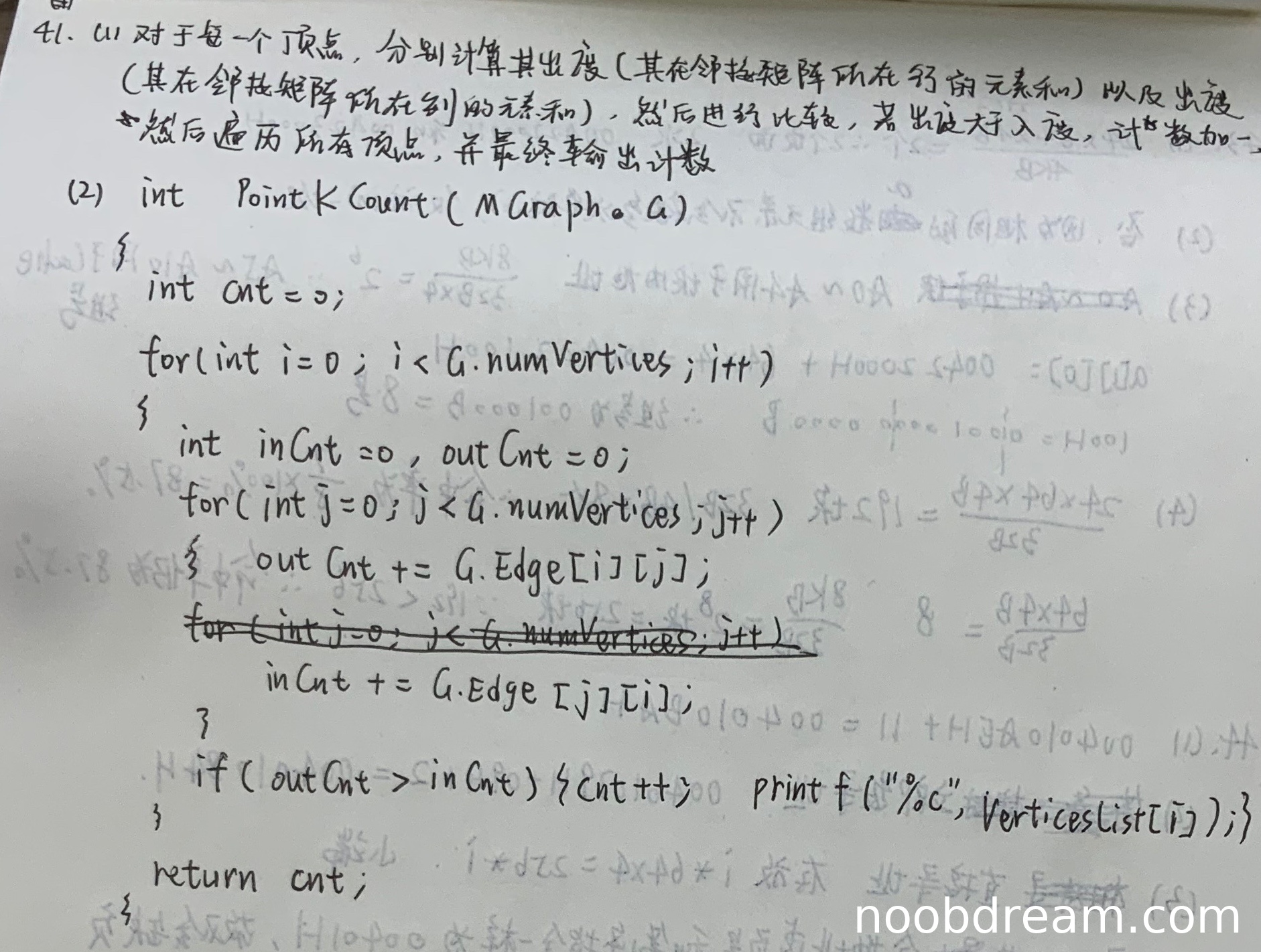 - 缺少输出K顶点名称的功能,题目要求"输出G中所有K顶点",学生代码只计数没有输出(扣4分)