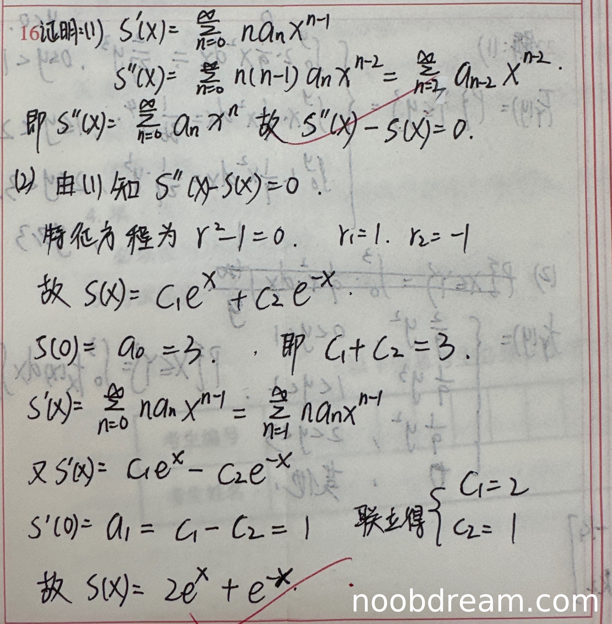 5. 最终答案S(x)=2eˣ+e⁻ˣ与标准答案一致(只是C₁、C₂的分配与标准答案交换,但表达式等价)