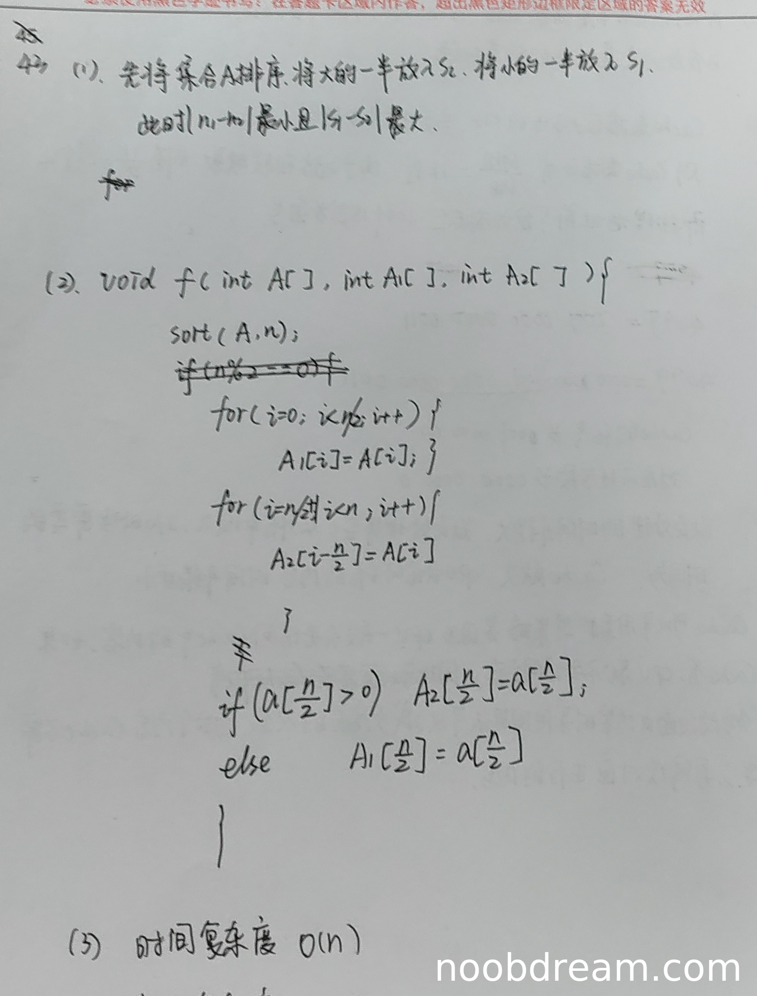 理由:学生给出的时间复杂度O(n)是错误的。采用sort函数进行排序的时间复杂度是O(nlog₂n),而不是O(n)。因此本小题不得分。