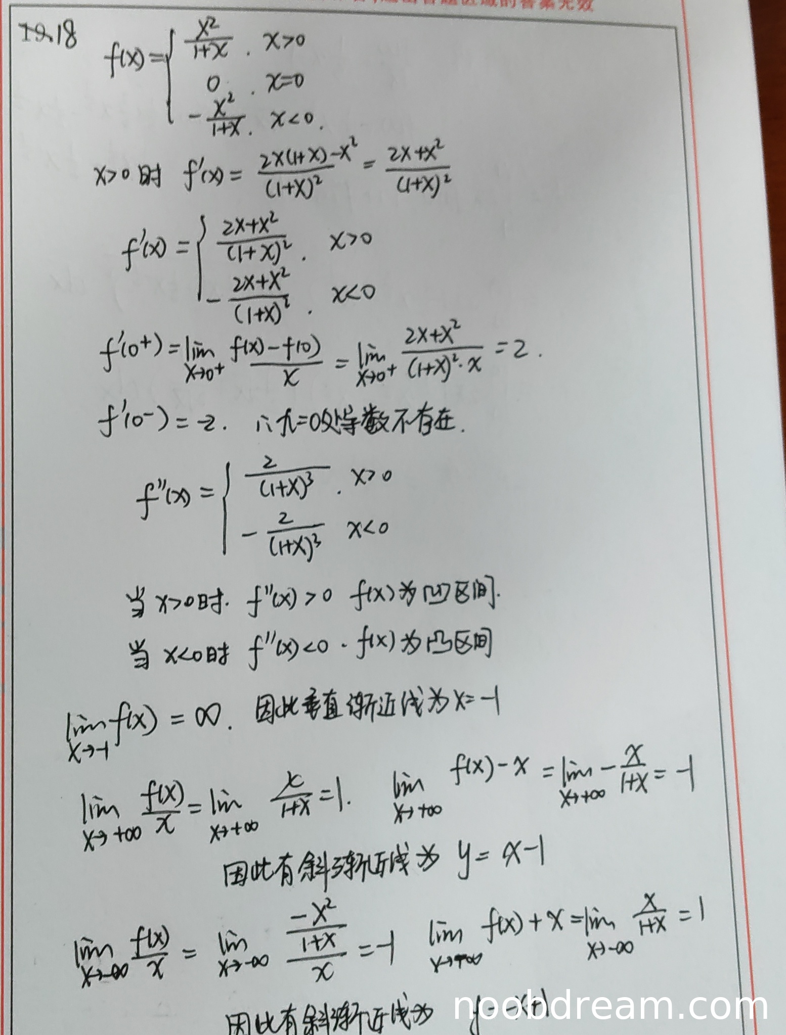 学生正确计算了二阶导数并分析了符号:当 \(x>0\) 时 \(f''(x)>0\)(凹),当 \(x<0\) 时 \(f''(x)<0\)(凸)。但存在以下问题: