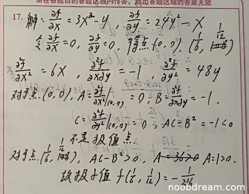 - 表述"1/6不是极值点"存在歧义,应为"(0,0)不是极值点"(扣1分)