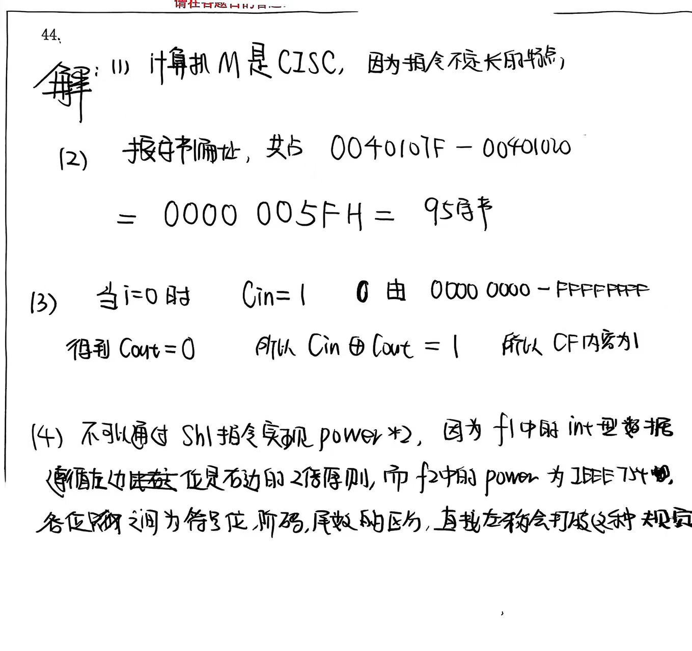 学生回答正确,指出计算机M是CISC,理由是指令不定长。这与标准答案一致。得2分。