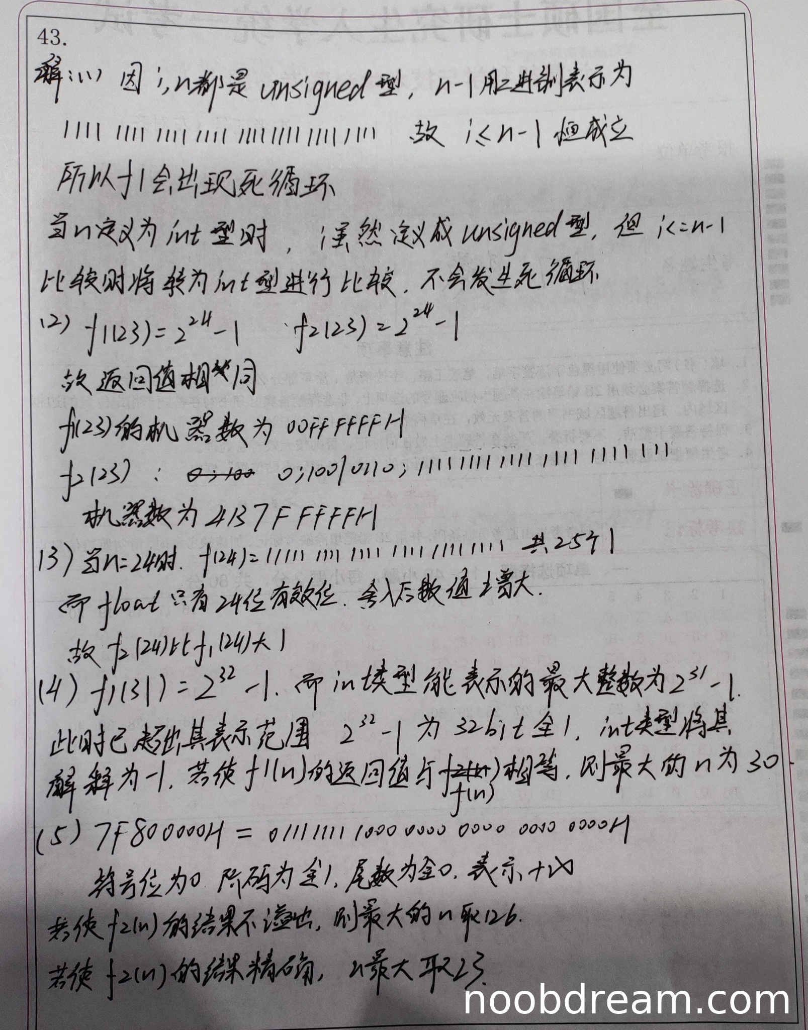 学生正确解释了n=0时死循环的原因:n-1为无符号数最大值,条件恒成立。得2分。