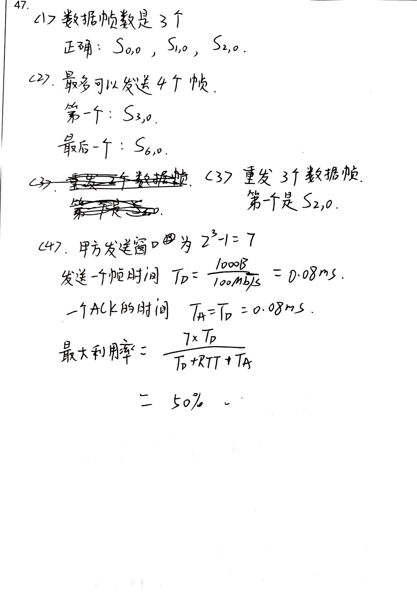 学生答案正确。虽然计算过程中写错了帧传输时间(实际应为0.08ms但写成0.08ms,可能是笔误),但最终结果50%与标准答案一致,且公式正确。得1分。