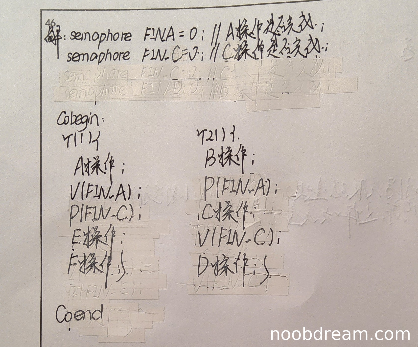 - A操作后执行V(FIN_A)正确,表示A已完成