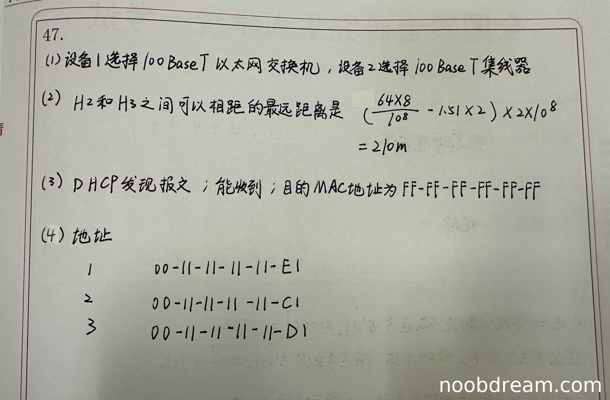 学生答案:设备1选择100BaseT以太网交换机,设备2选择100BaseT集线器