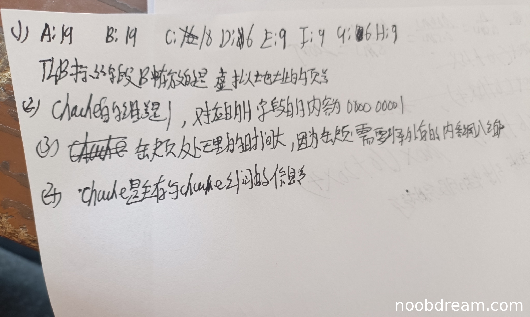 - TLB标记字段B中存放的是虚页号,第二次识别回答正确,得1分