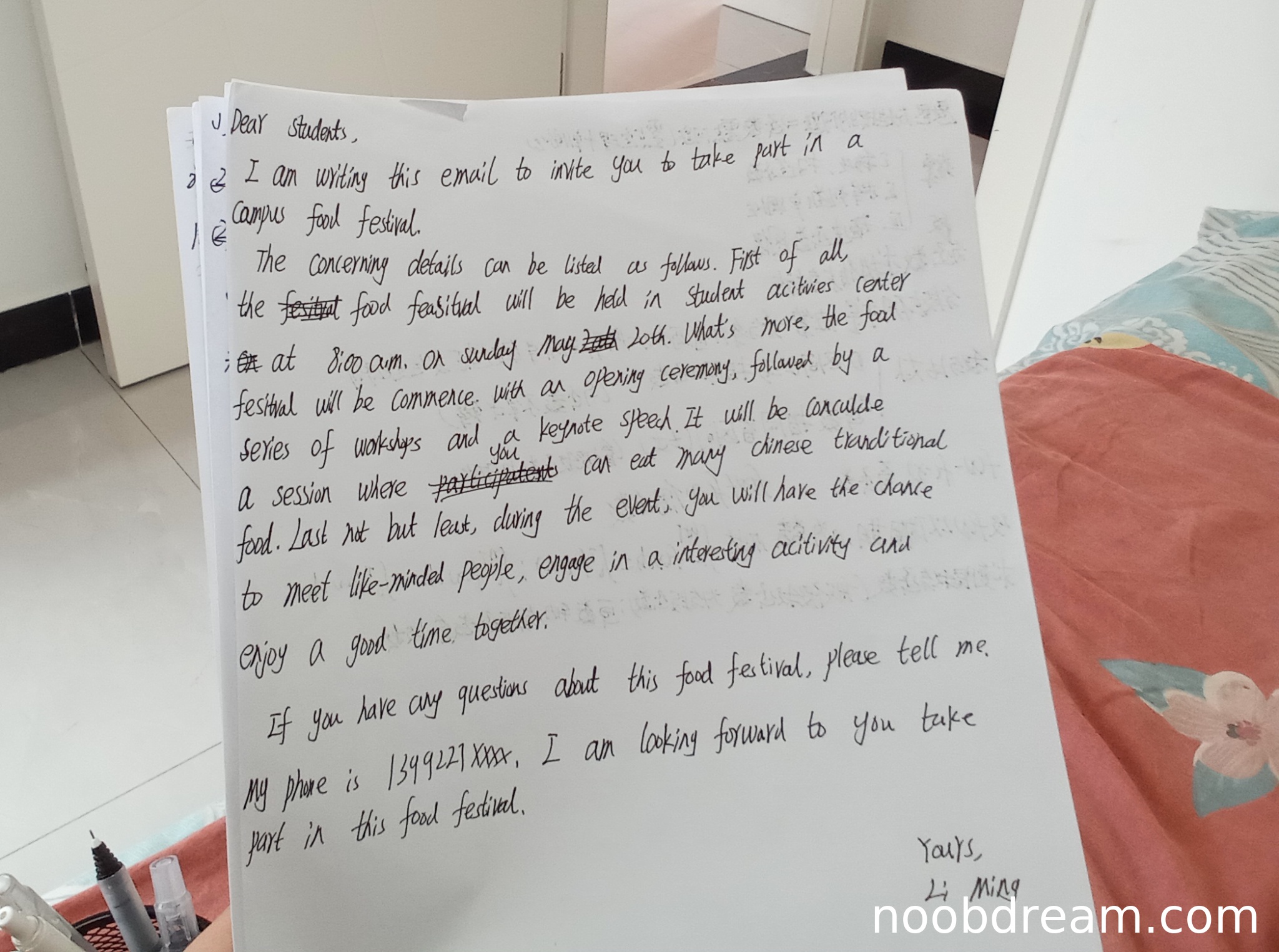 - "I am looking forward to you take part" 应为 "I am looking forward to your participation"