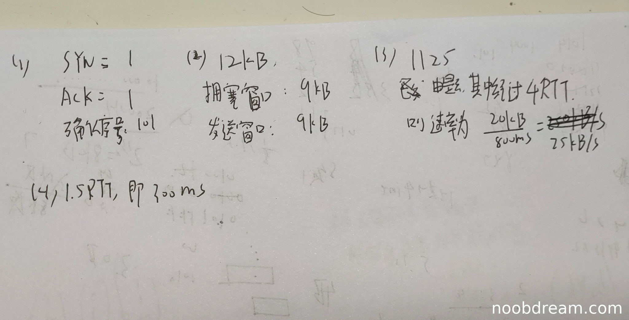 - 下一个待发送数据段序号1125错误(标准答案为20581),扣1分。