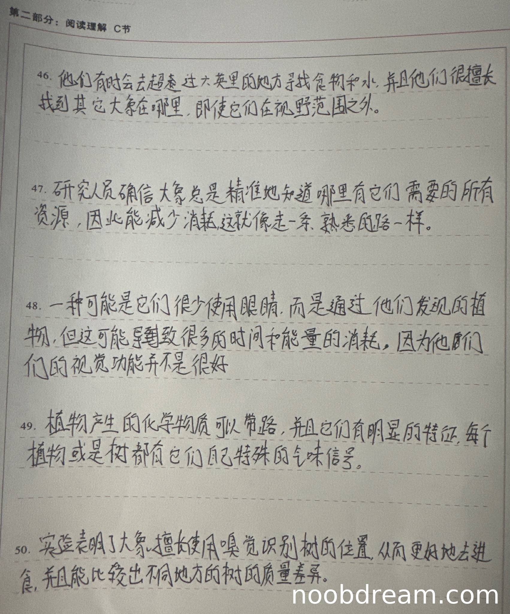 将"take shortcuts"译为"减少消耗"存在逻辑偏差,未准确传达"走捷径"的含义;"following familiar routes"译为"像走一条熟悉的路"不够准确。但核心信息(大象精确定位资源位置)基本正确,扣1分,得1分。