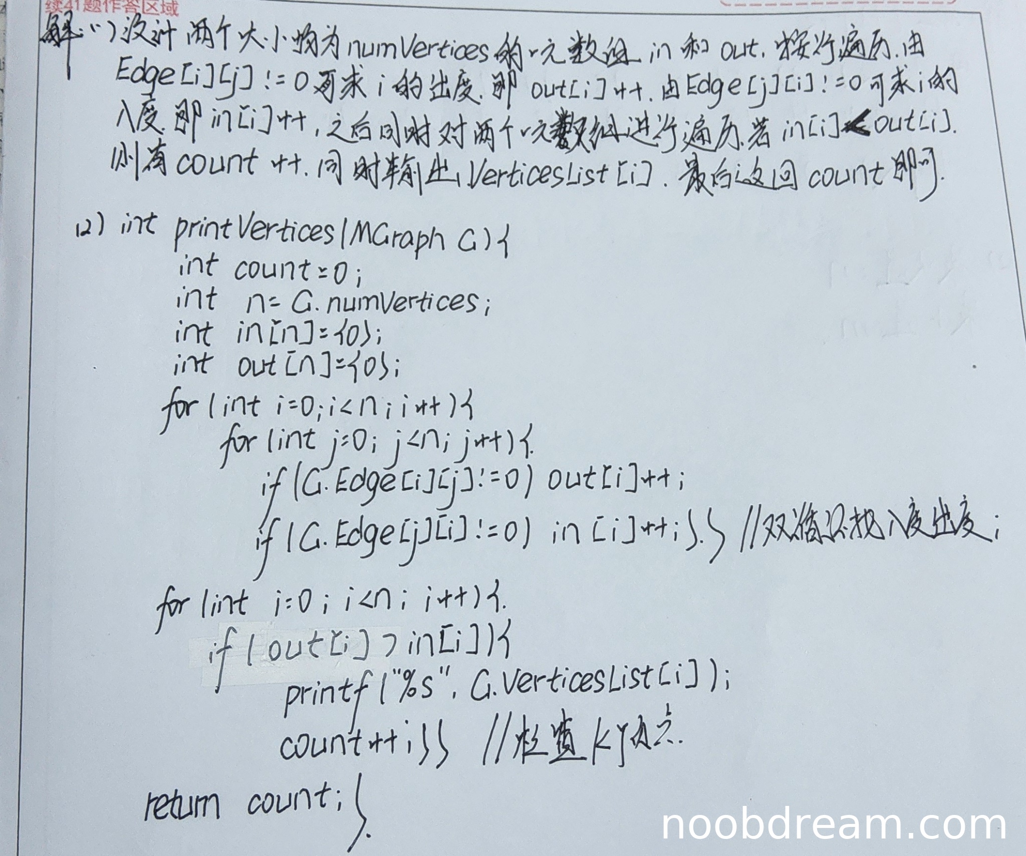 - 算法逻辑正确,能正确统计入度和出度,并找出K顶点。