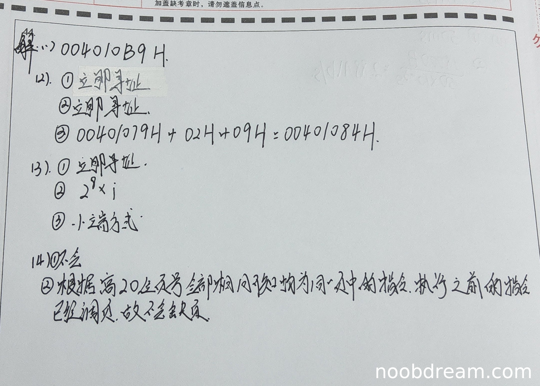 学生答案正确给出第20条指令的虚拟地址为004010B9H,与标准答案一致。得3分。