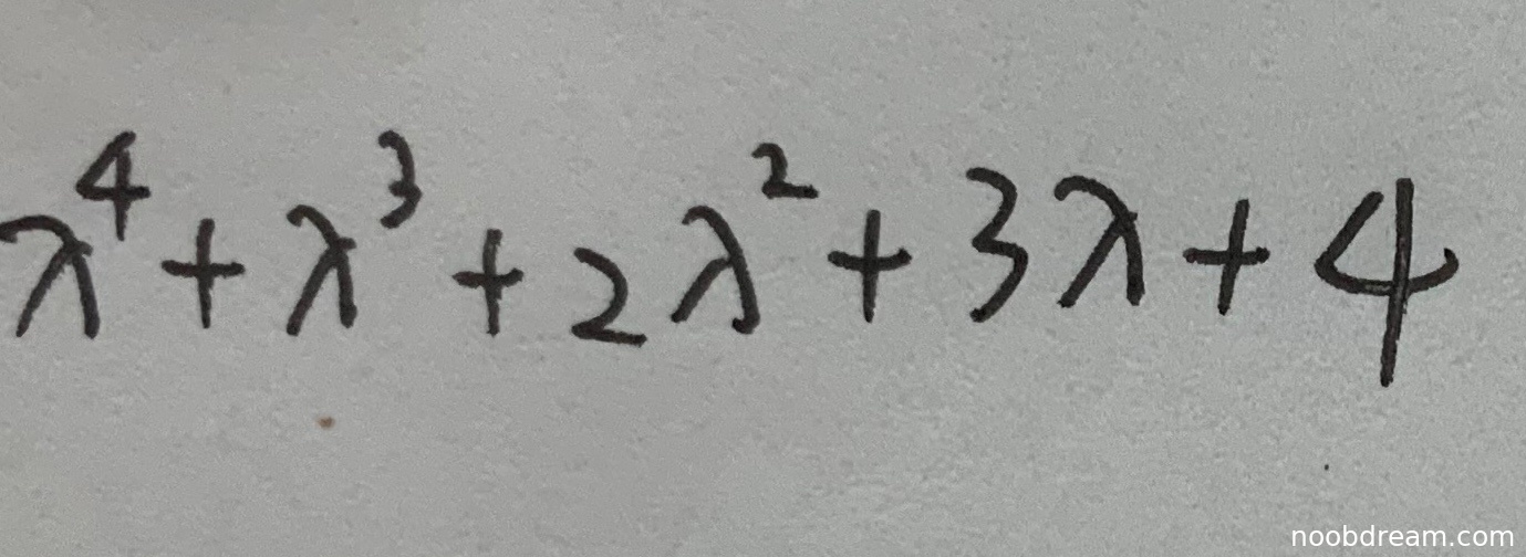 第1次识别结果为:\(\lambda^{4}+\lambda^{3}+2\lambda^{2}+3\lambda + 4\),该结果与标准答案 \(\lambda^{4}+\lambda^{3}+2 \lambda^{2}+3 \lambda+4\) 完全一致,因此得4分。