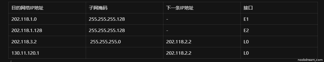学生给出的路由表中: