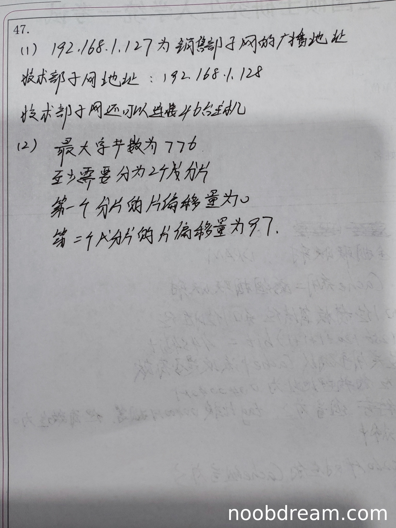 第一问:学生正确给出最大IP分片封装数据字节数为776 B,得1分。