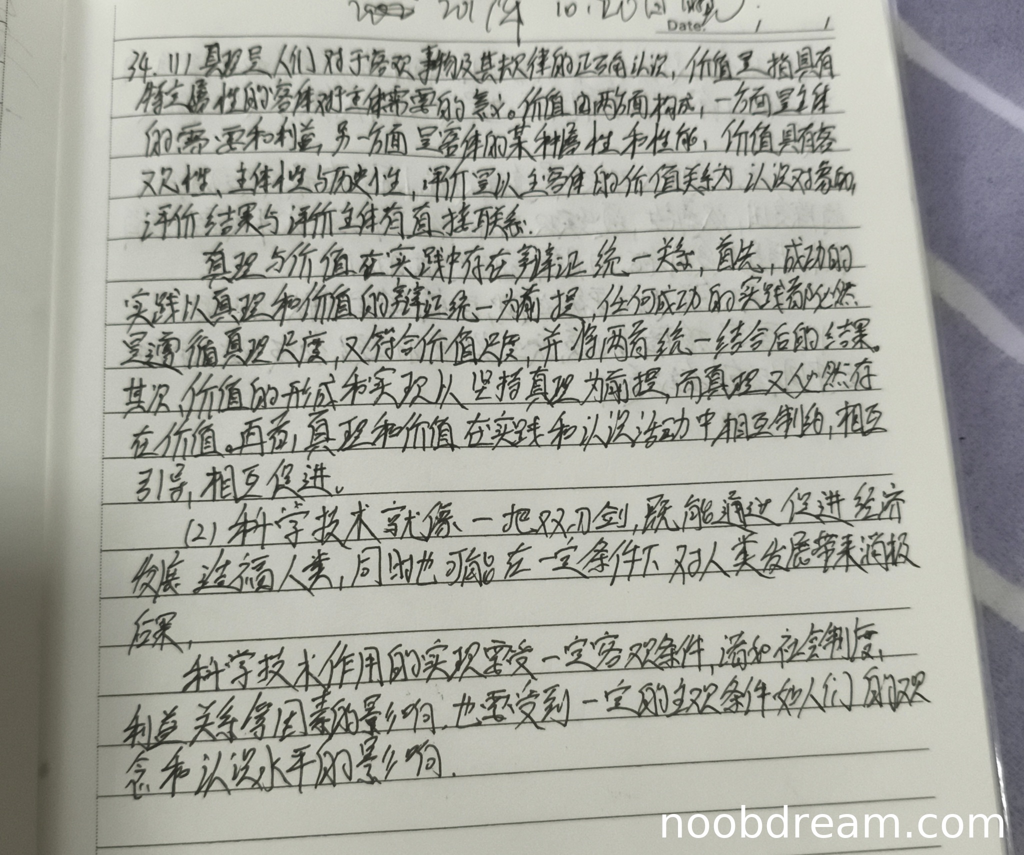 学生答案准确阐述了真理和价值的定义,以及价值的多维特性(客观性、主体性、历史性,虽然标准答案中为“社会历史性”,但“历史性”可视为“社会历史性”的合理简略表达,不扣分)。同时,学生完整地论述了真理与价值在实践中的辩证统一关系的三个要点。这些内容与标准答案的核心观点一致。虽然答案没有像标准答案那样详细结合材料进行分析,但题目要求是“结合所学知识分析”,学生答案已经运用了核心原理,且原理阐述正确完整。因此,该部分答案逻辑清晰,要点齐全,可得满分。