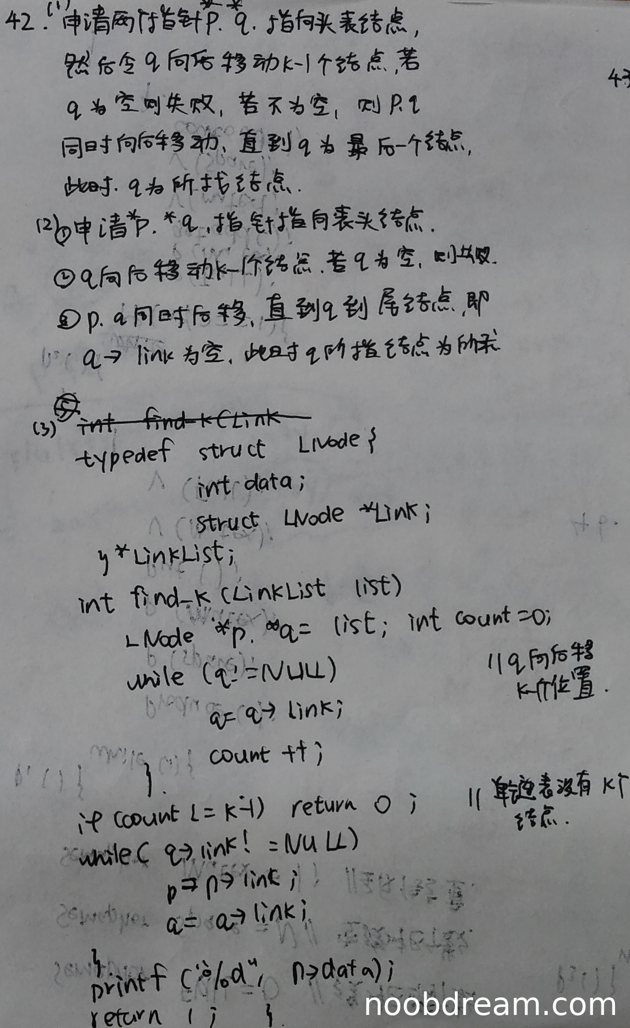 2. 第一个循环计算链表长度后,q已经指向NULL,第二个循环中q->link会访问空指针
