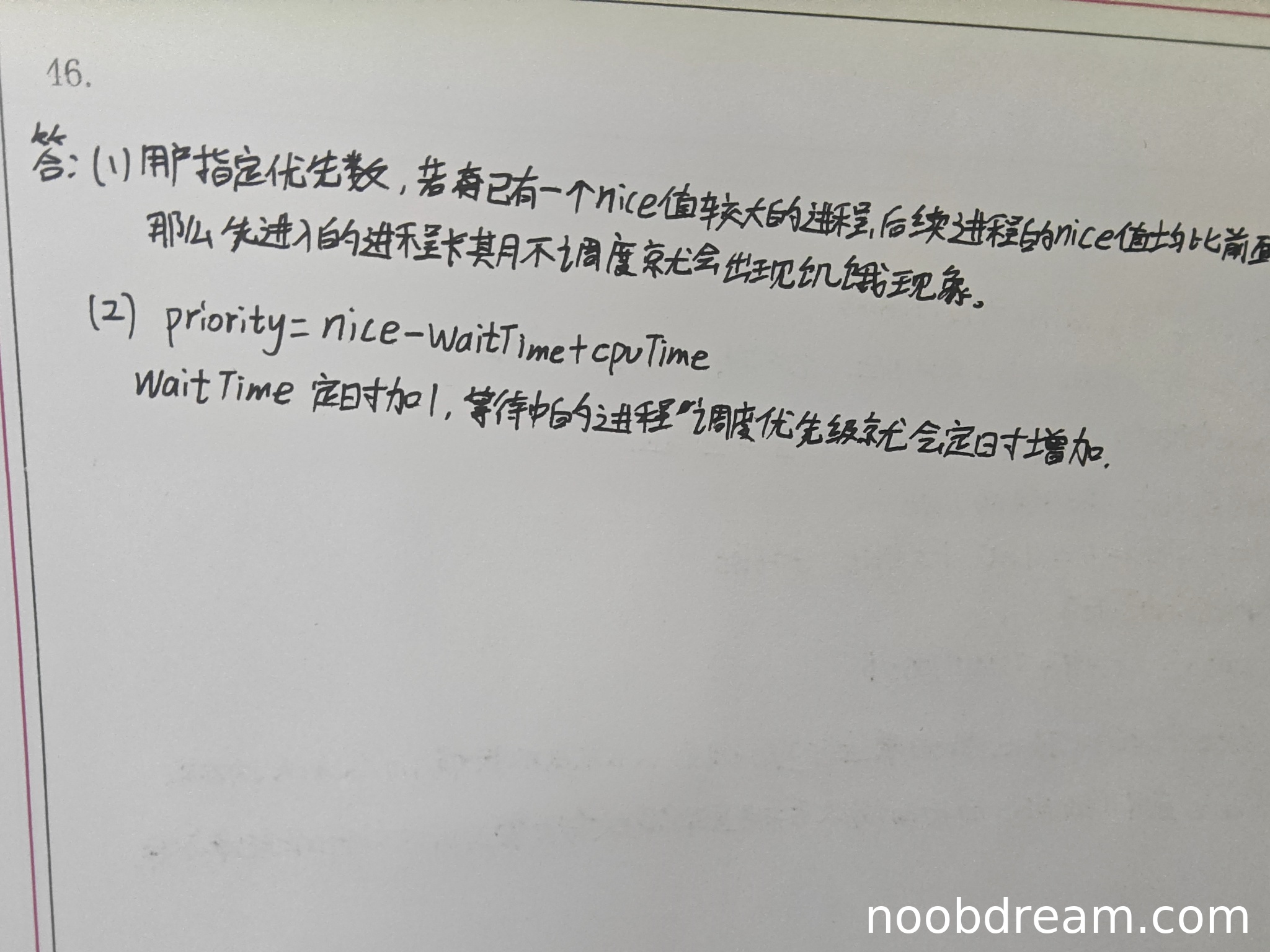 学生给出的公式为:priority = nice - WaitTime + cpuTime
