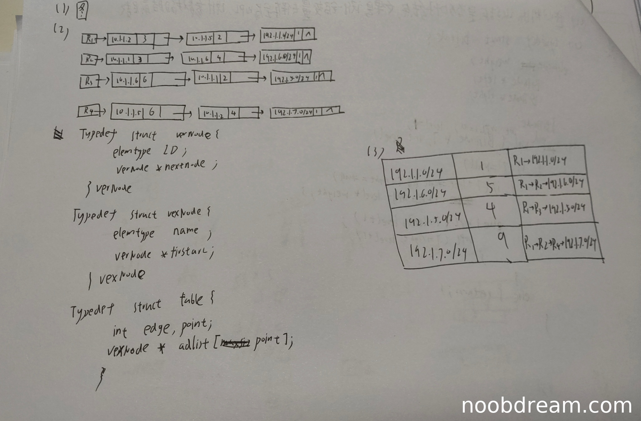 学生设计了链式存储结构,包含表头结点和弧结点的定义,基本思路正确。但存在以下问题: