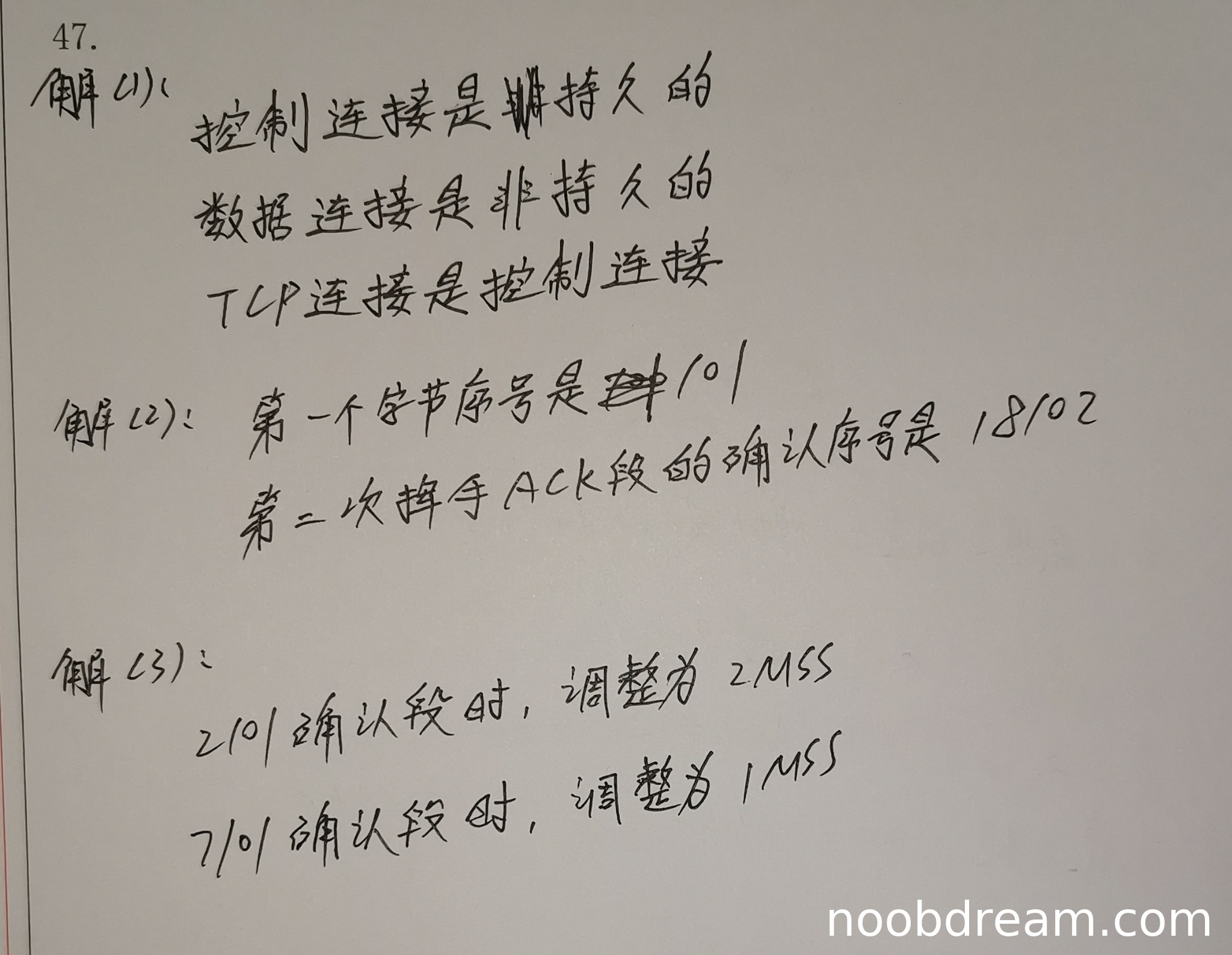 学生答案:控制连接是持久的;数据连接是非持久的;TCP连接是控制连接。与标准答案完全一致,得3分。