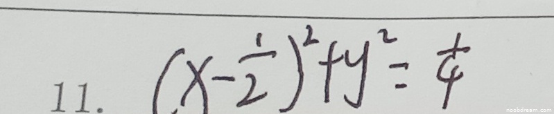 学生作答给出了正确的曲率圆方程 \((x - \frac{1}{2})^2 + y^2 = \frac{1}{4}\),与标准答案完全一致。虽然第一次识别结果中包含了对圆方程的分析说明,但核心答案正确;第二次识别结果直接给出了正确方程。根据评分要求,答案正确得满分,额外分析不扣分也不加分。因此本题得5分。
