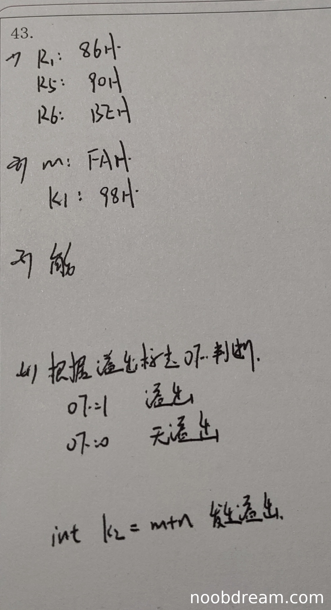 学生回答中,R1=86H正确,R5=90H正确,但R6两次识别结果分别为132H和13EH,均不正确(正确应为7CH)。R1和R5各得1分,R6错误扣1分,因此得分为2分。