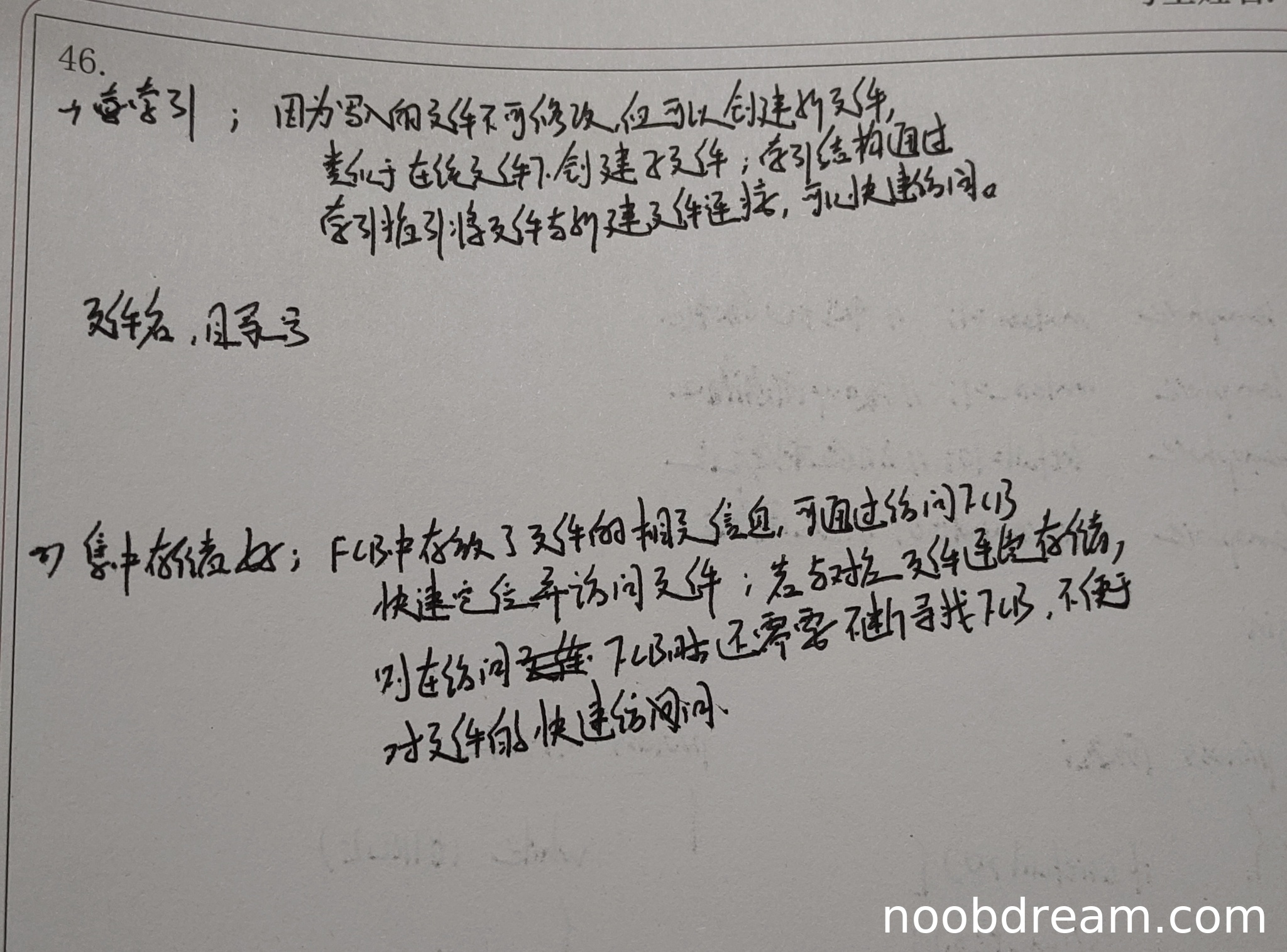 学生第一问选择了索引或符号链接,而标准答案为连续分配。理由中未正确分析一次性写入、不可修改且可多次创建新文件的特点,未能说明连续分配在减少空间开销和提升读取速度方面的优势,反而提到了索引或符号链接,这与题目要求不符。第二问中,学生回答“姓名,目录号”或未明确说明FCB中需要起始块号和块数等字段,未能正确描述定位文件数据块所需的字段。因此,该部分存在逻辑错误,扣分。得分:1分(理由部分有提及文件组织方式,但核心逻辑错误)。