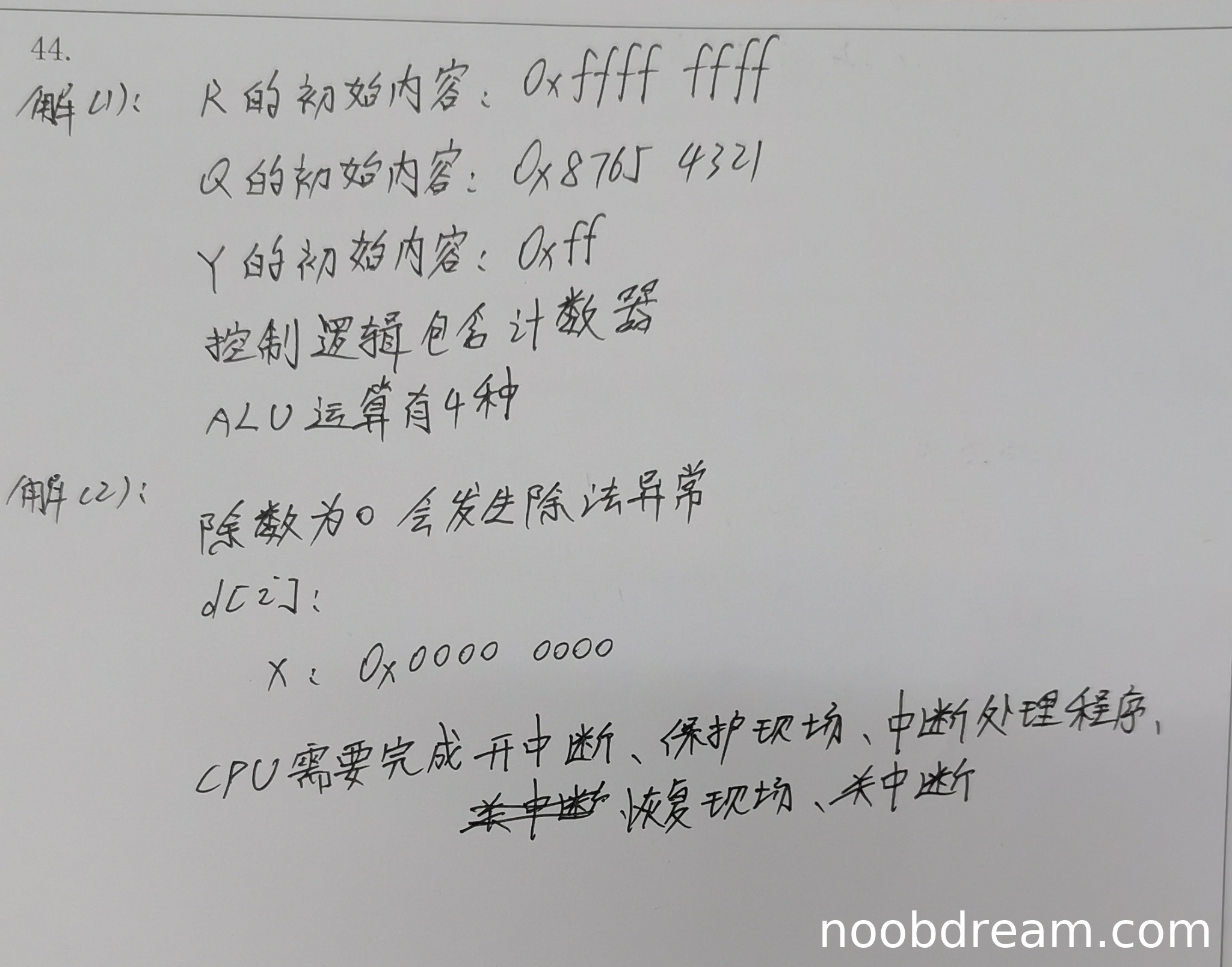 扣分:未指出溢出异常扣2分,CPU操作描述不完整且有错误扣2分