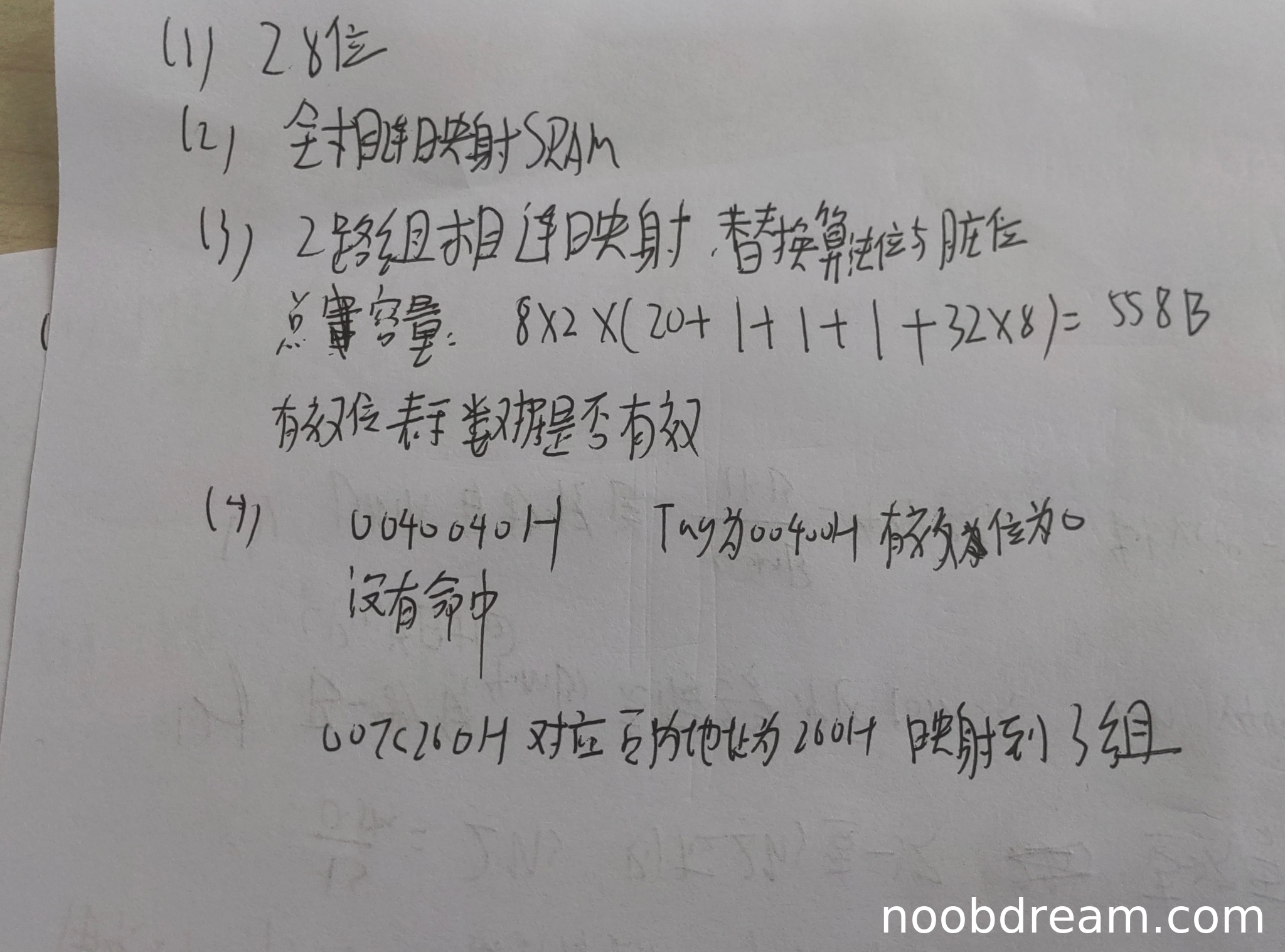 学生答案正确,TLB采用全相联映射,使用SRAM实现,与标准答案一致。得4分。