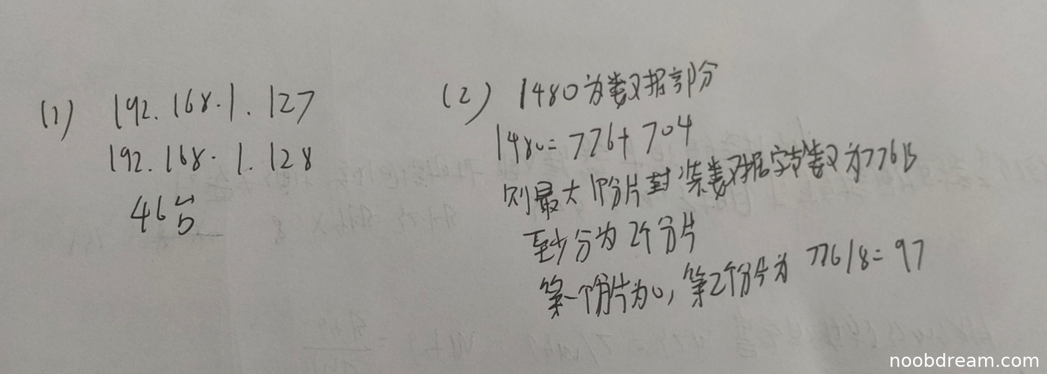 第一问:销售部子网的广播地址为192.168.1.127,学生两次识别结果均正确,得1分。