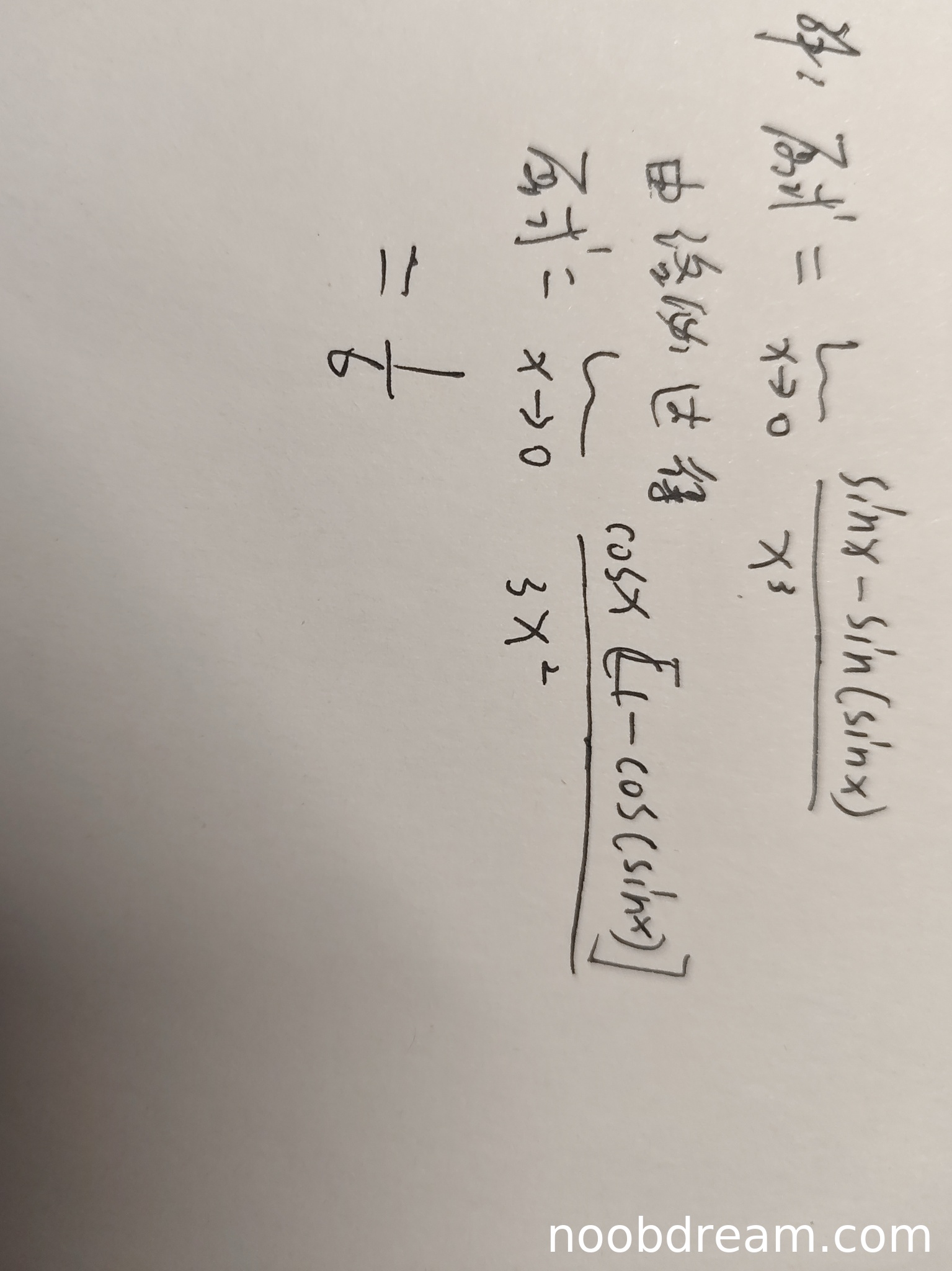 学生作答提供了两种识别结果。第一种识别结果给出了完整的求解过程:先进行等价无穷小代换(将分母的sin x替换为x),然后应用洛必达法则,最后得到正确结果1/6。第二种识别结果给出了部分过程,但缺少最后一步的计算。