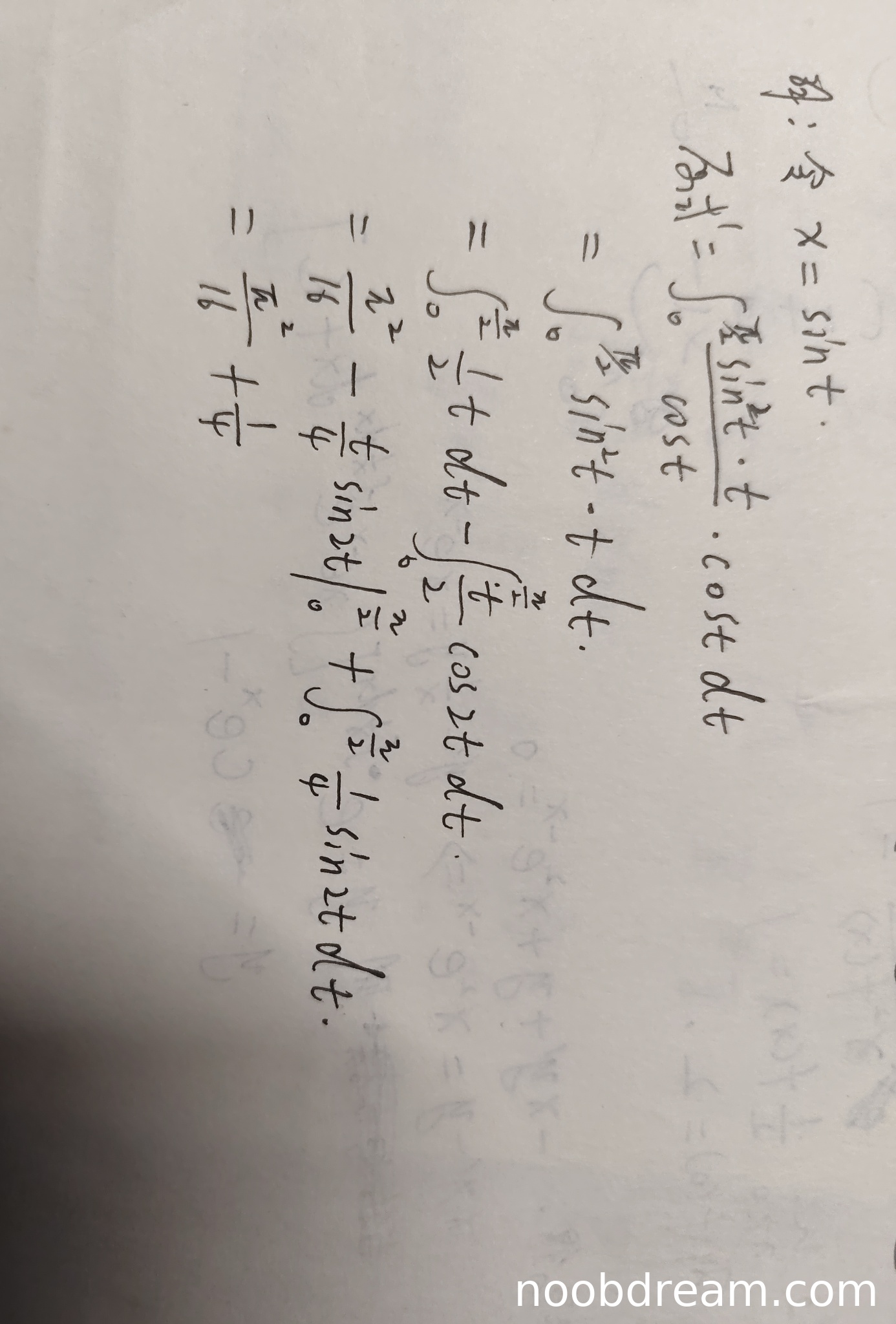 - 但积分上下限处理有误,应为 \(\int_0^{\frac{\pi}{2}}\) 而不是 \(\int_0^{\arcsin x}\)
