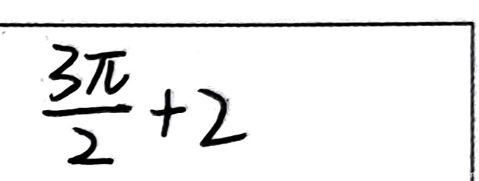 学生两次识别结果均为 \(\frac{3\pi}{2}+2\),与标准答案完全一致。该题考查参数方程求切线截距,需要计算导数、切线方程和截距。学生答案正确表明完成了所有计算步骤且结果无误。根据评分规则,答案正确给满分4分。