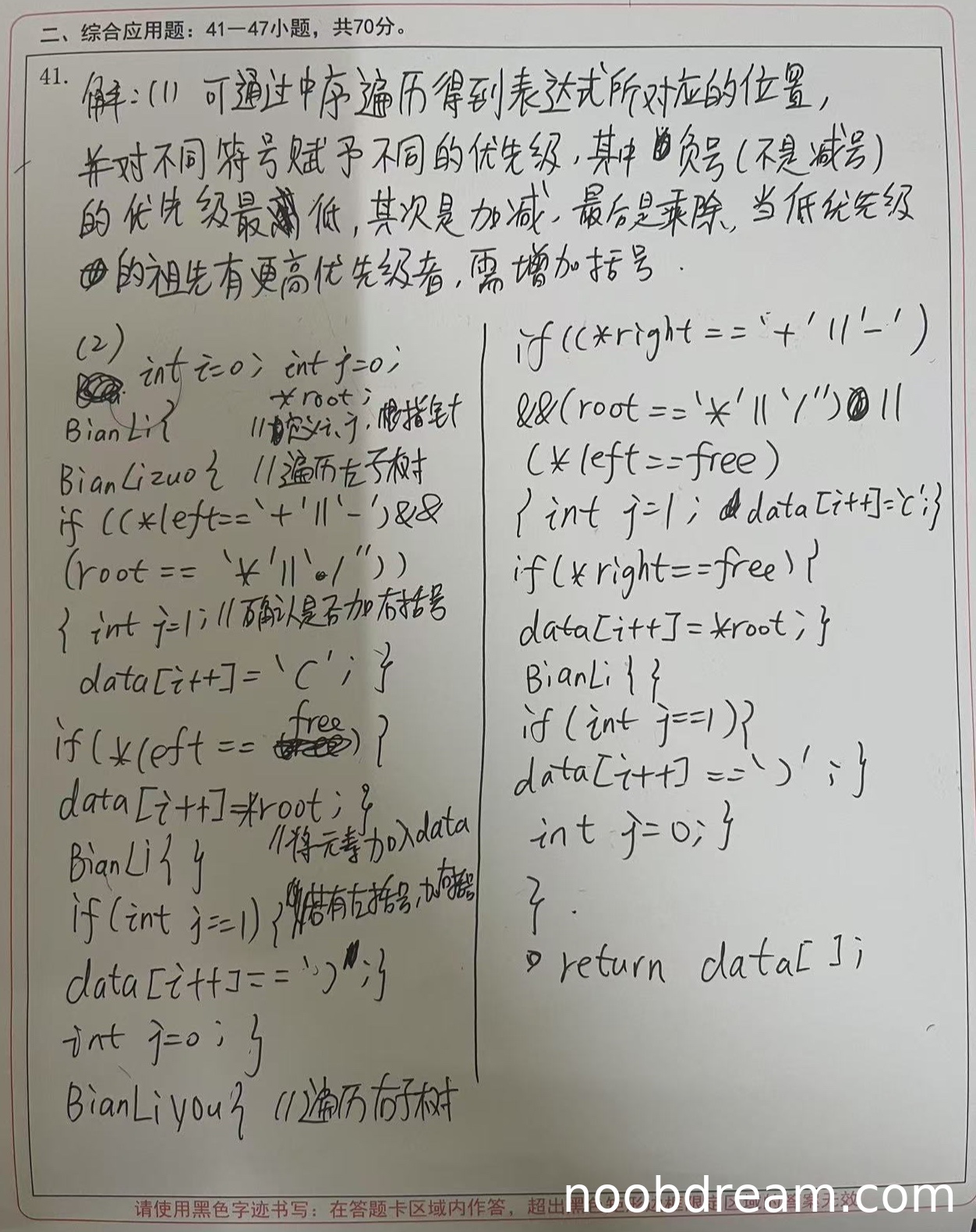 虽然体现了中序遍历和优先级比较的思路,但代码实现基本不可用,扣8分。