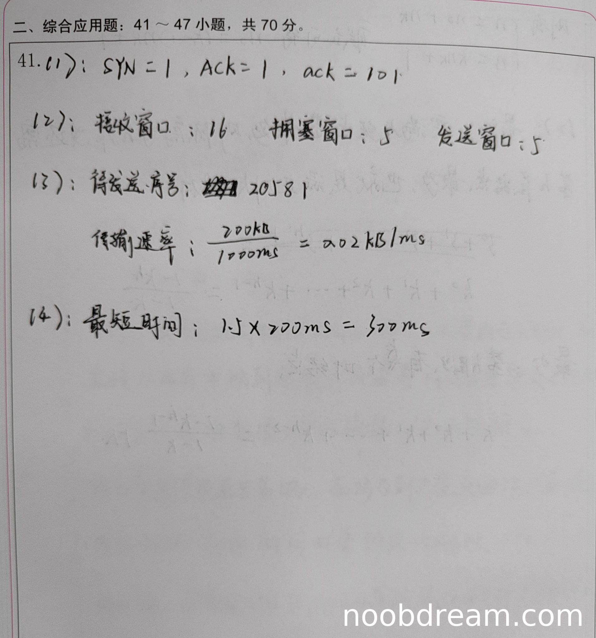 学生答案中SYN=1、ACK=1、确认序号=101与标准答案完全一致。得3分。