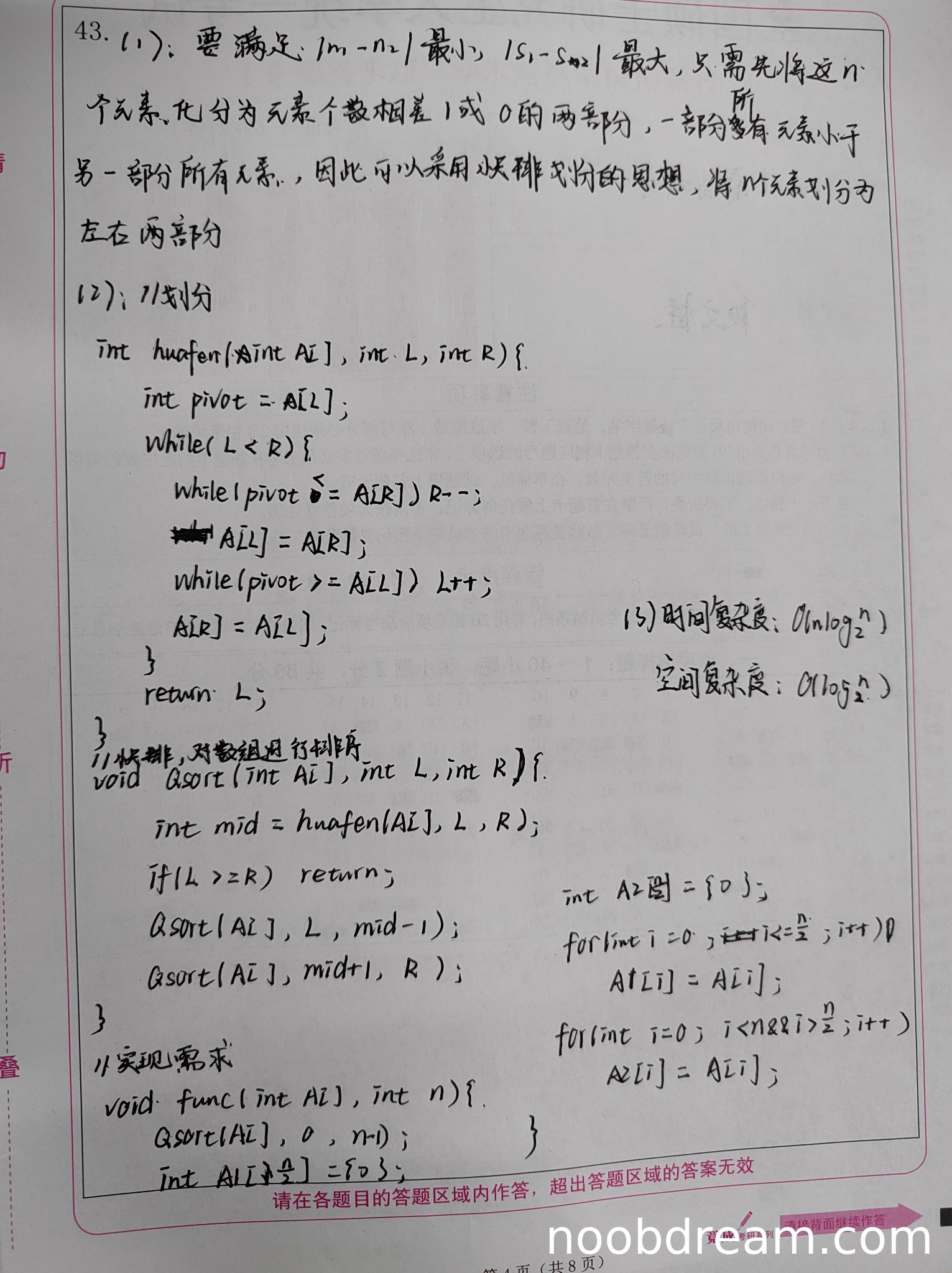 虽然划分函数基本正确,但整体算法思路与题目要求不符。