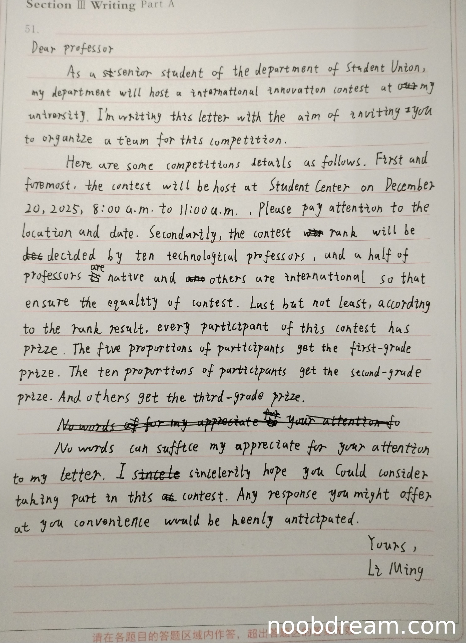- 邮件完成了邀请教授组织团队参赛的核心任务
