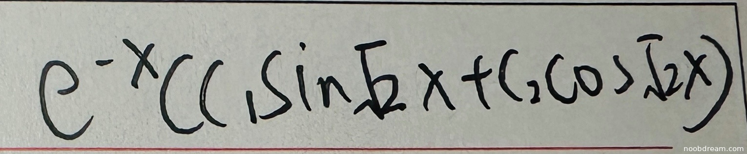 学生第一次识别结果为:$e^{-x}(c_1\sin\sqrt{2}x + c_2\cos\sqrt{2}x)$