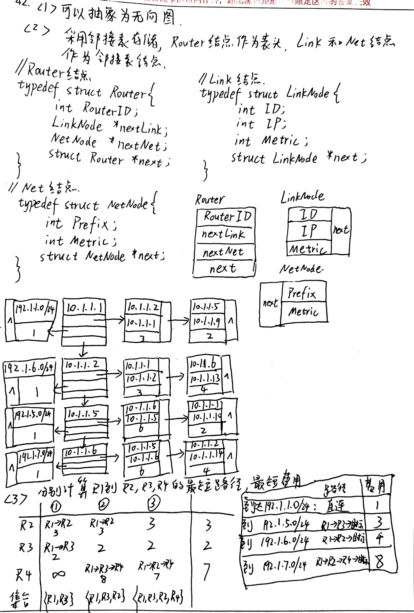 学生采用邻接表存储结构,Router结点作为表头,Link和Net结点作为邻接表结点,思路正确。但存在以下问题: