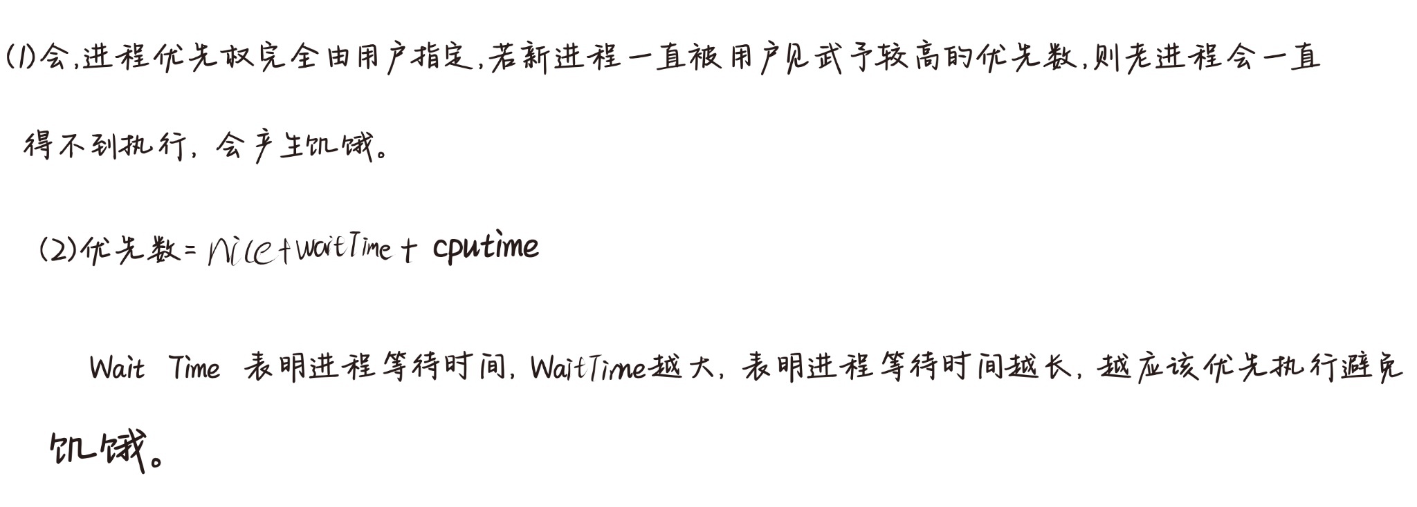 学生正确解释了饥饿现象的原因:静态优先数可能导致高优先数进程一直得不到执行。回答完整且准确。得2分。
