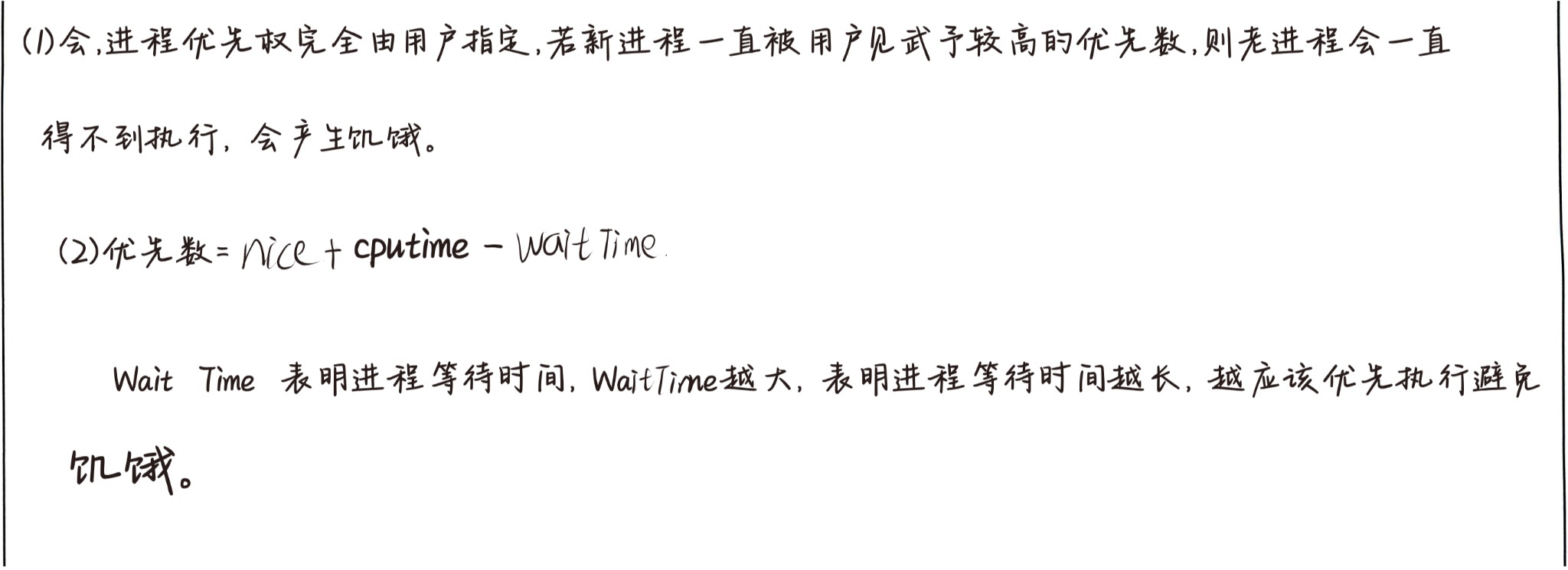 学生给出的计算公式为:priority = nice + cputime - waitTime,这符合标准答案要求: