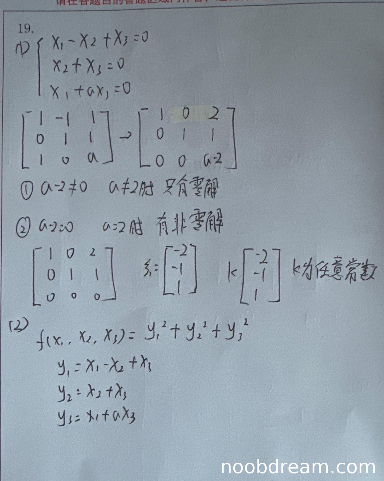 由于学生作答部分只提供了图片标签而没有显示实际的识别结果,我无法看到学生对该线性代数题目的具体解答内容。因此无法根据标准答案对学生的解答进行评分。建议提供学生的具体解答内容,以便进行准确的评分。