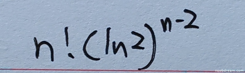 学生第一次识别结果为空,无法判断正确性;第二次识别结果为 $n!(\ln 2)^{n - 2}$。标准答案为 $n(n-1)(\ln 2)^{n-2}$。