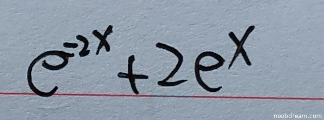 学生作答为:$e^{-2x}+2e^{x}$,与标准答案 $e^{-2 x}+2 e^{x}$ 完全一致。该函数满足微分方程 $y^{\prime \prime}+y'-2 y=0$,且在 $x=0$ 时,$y(0)=1+2=3$,$y'(0)=-2+2=0$,满足极值条件。因此答案正确,得4分。