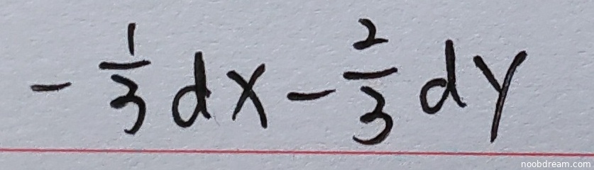 $$-\frac{1}{3}(d x+2 d y) = -\frac{1}{3}dx - \frac{2}{3}dy$$