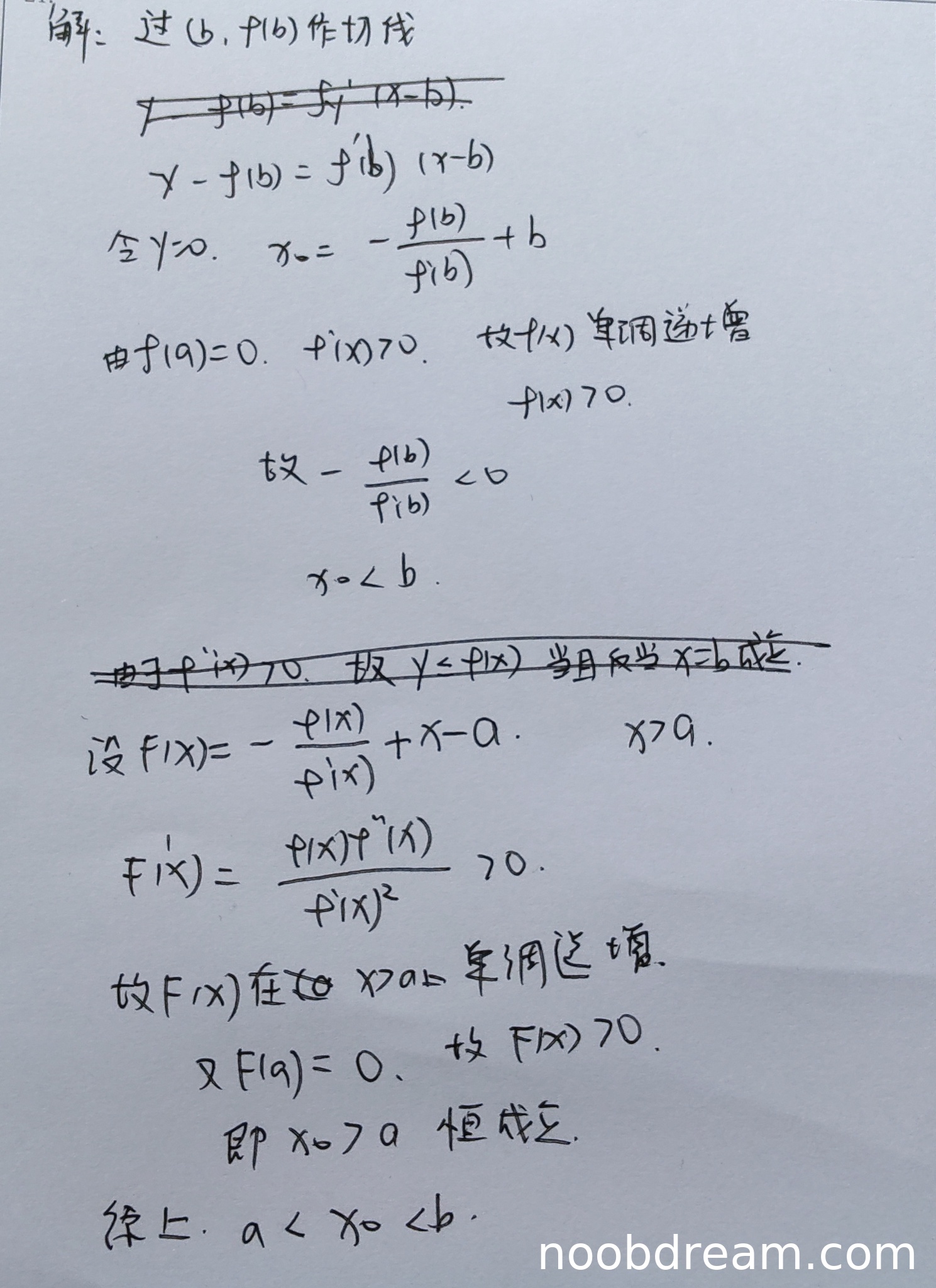 - 正确写出切线方程并得到 \(x_0 = b - \frac{f(b)}{f'(b)}\)