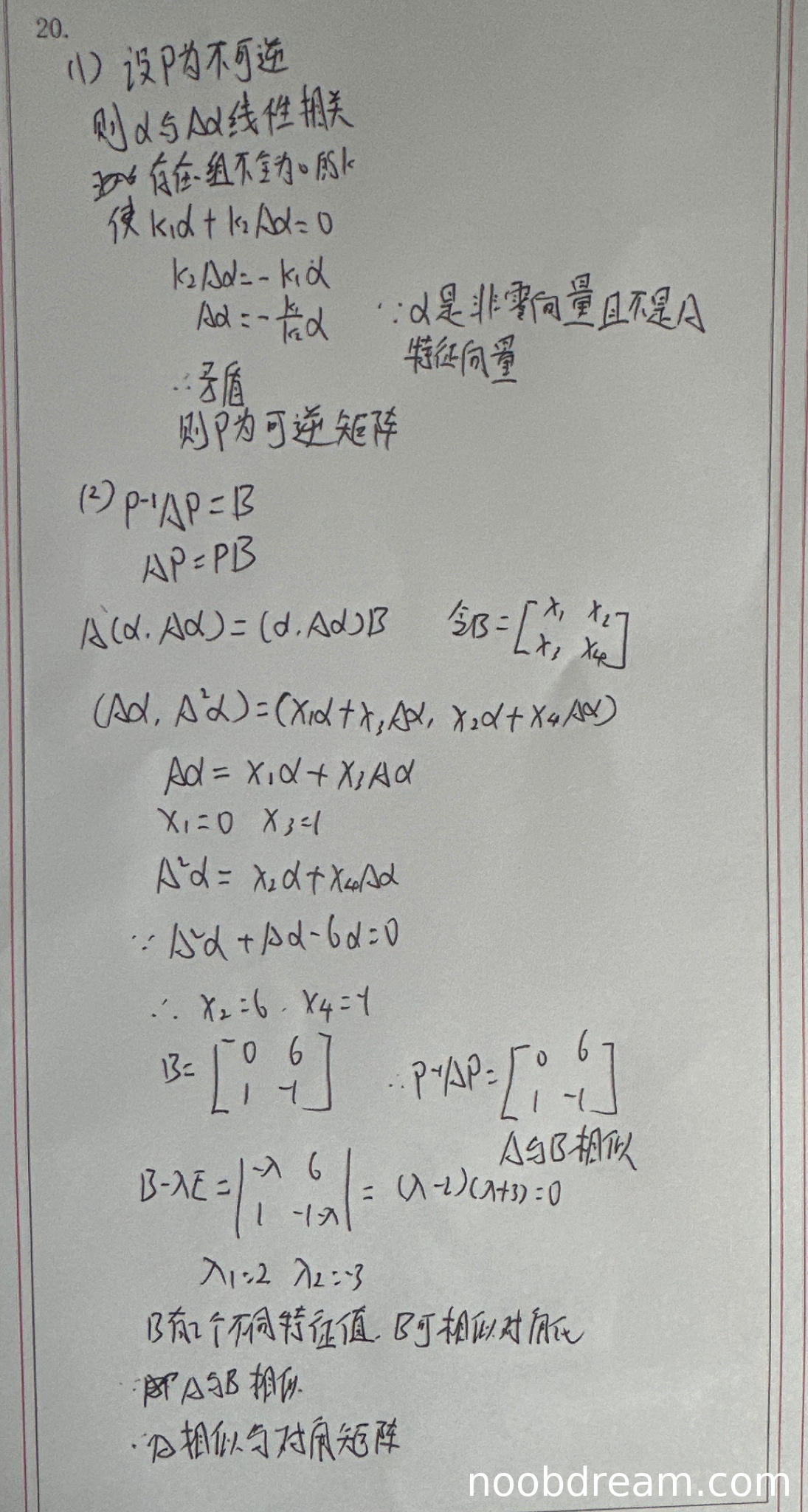 - 正确计算特征多项式|B-λE| = λ²+λ-6 = (λ-2)(λ+3)