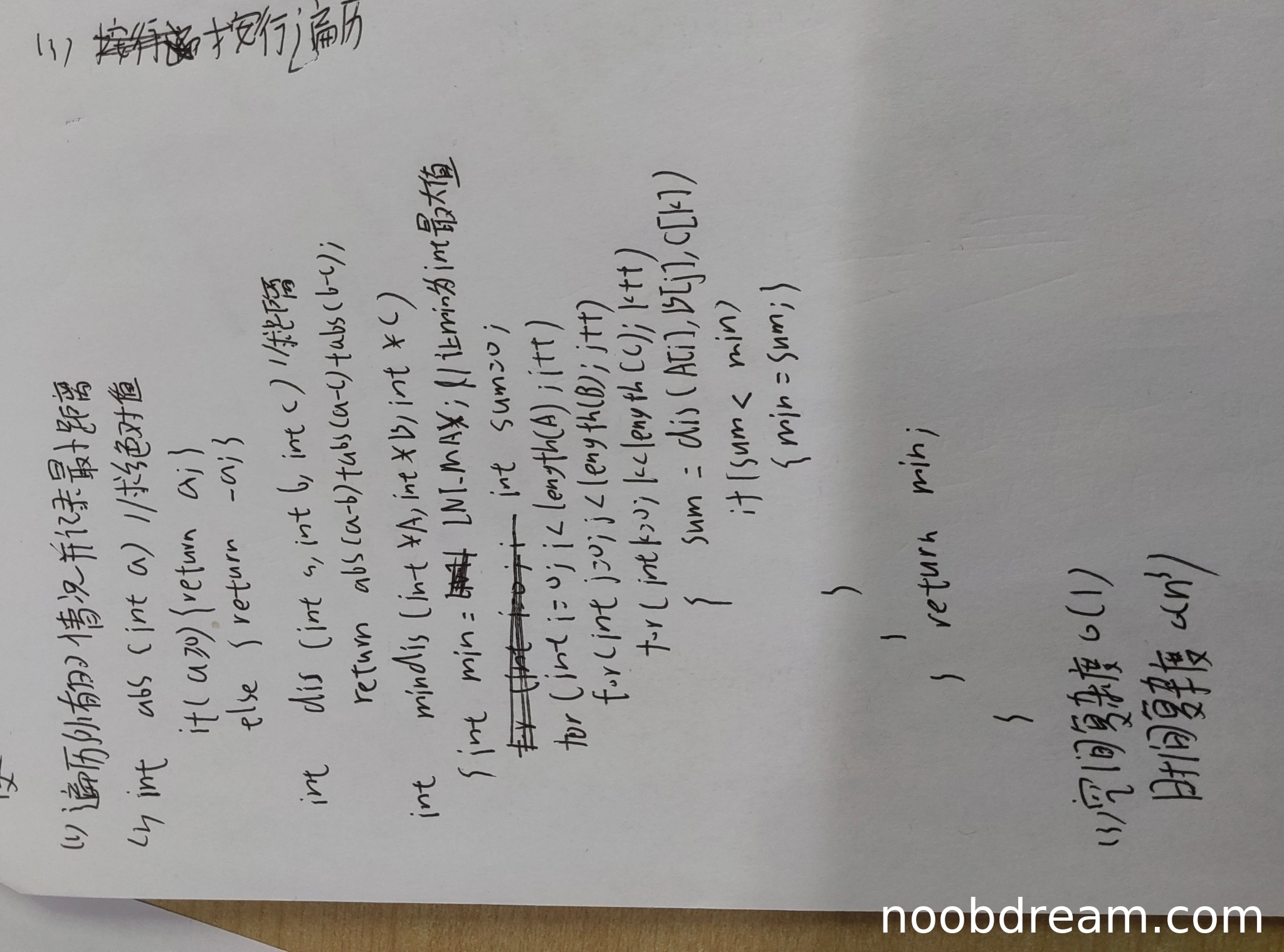 得分:4分。理由:代码实现了暴力法的核心逻辑,包含了距离计算和最小值更新,基本功能正确。但存在以下问题: