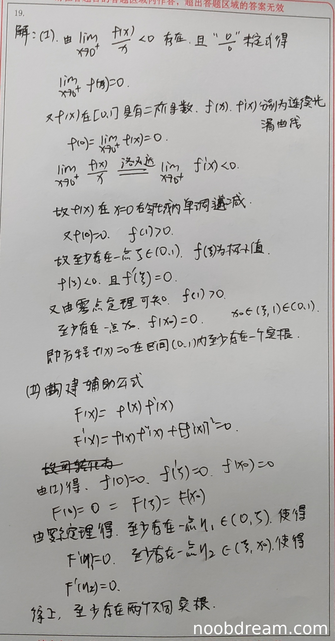 - 正确使用了极限保号性得出在0点右邻域内f(x)<0(2分)